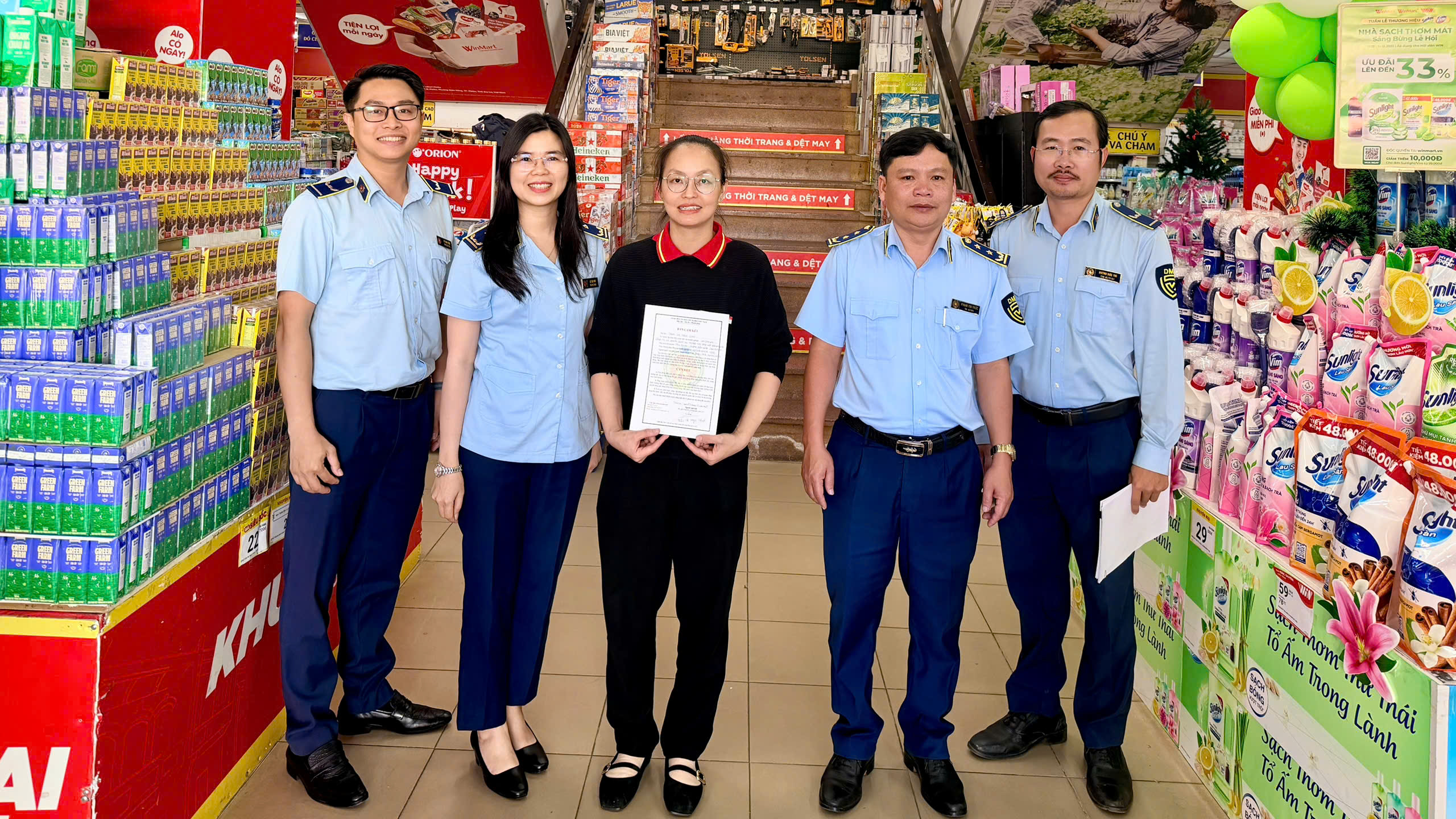 Hình ảnh lượng lượng QLTT tuyên truyền và ký cam kết tại Siêu thị WinMart